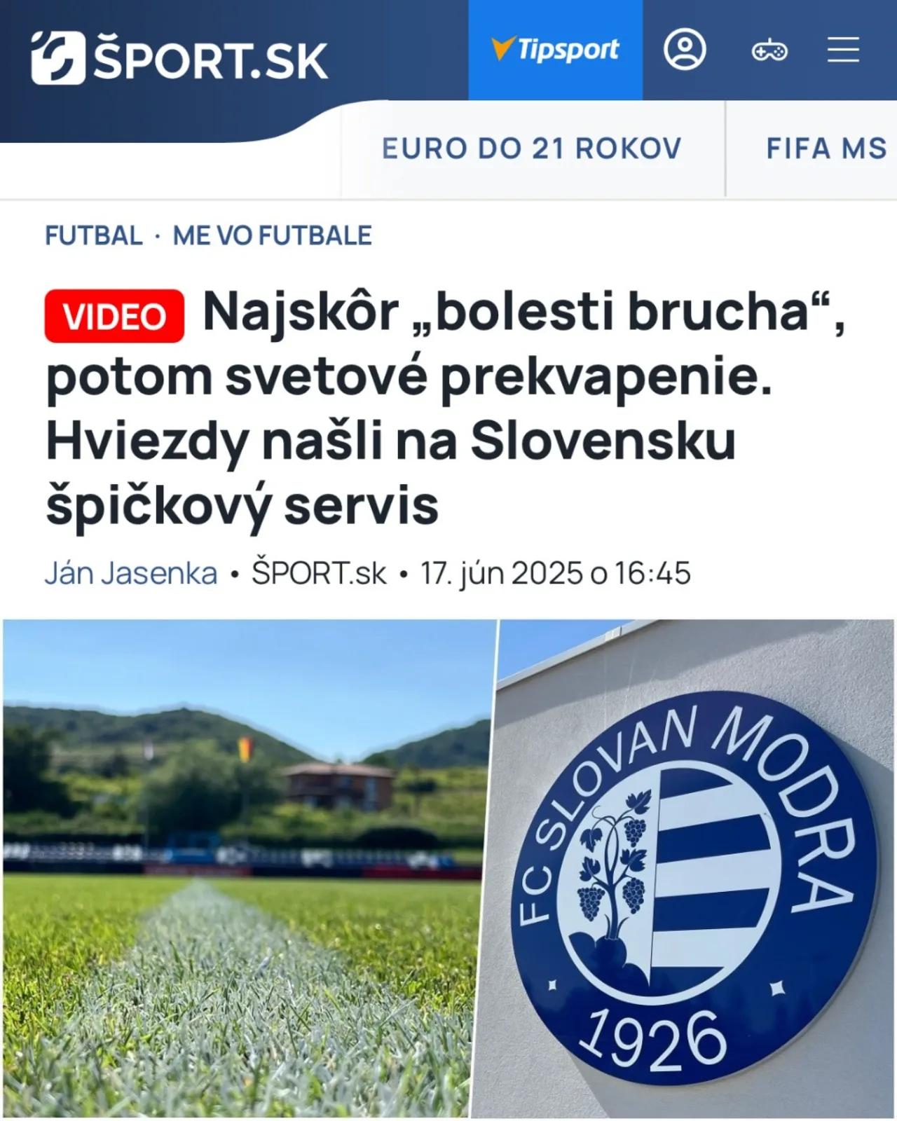 Mužstvo s trhovou hodnotou takmer 260 milión eur, ktoré si hneď po dvoch stretnutiach zabezpečilo postup medzi osmičku najlepších majstrovstiev Európy do 21 rokov, prejavilo veľkú spokojnosť s podmienkami v Modre aj v počas prebiehajúceho šampionátu. „Áno a veľmi rád by som sa k tomu vyjadril,“ povedal na úvod pre Šport.sk tréner Nemecka Antonio di Salvo. „Podmienky sú tu vynikajúce, čo musím naozaj potvrdiť. Máme skvelý hotel. Z tréningového ihriska som mal najskôr veľké obavy,“ priznal, pričom použil nemecký slang „bauchschmerzen“, teda bolesti brucha. „Keď som videl jeho stav v decembri a čo vidím teraz, tak je to jeden špičkový trávnik, na ktorom sa dá skvelo trénovať,“ chválil tréningové podmienky v Modre di Salvo, „v Modre nám pomohlo množstvo ľudí, aby bolo ihrisko pripravené, takže im za to ďakujeme za celý náš tím. “V rovnakom tóne sa vyjadril aj hviezdny kanonier Nick Woltemade: „Môžem iba potvrdiť všetko, čo povedal Toni. Naozaj je to svetová trieda. Cítime sa tam veľmi dobre. Hotel je veľmi pekný a v krásnom prostredí. Môžeme si tam dobre oddýchnuť a pripravovať sa. Aj tréningové ihrisko je špičkové. Naozaj si myslím, že môžeme byť veľmi vďační a šťastní, že sa o to tak dobre postarali. Je to tu krásne a človek sa tu cíti naozaj príjemne.“ Zdroj: sport.aktuality.sk https://www.youtube.com/watch?v=NXLK2mtyzNQ https://www.youtube.com/watch?v=9gAIove68Uk